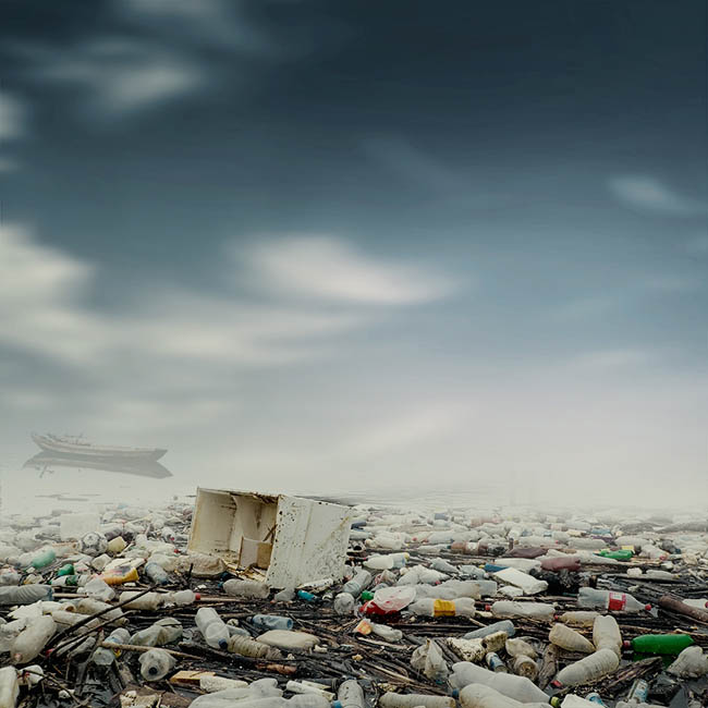 该作品在PS中的具体制作并不难,主要是利用蒙版融合天空与垃圾,虚化天空,用笔刷制造出烟雾,然后将色调变得晦暗。