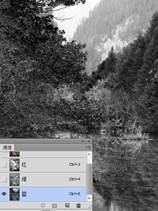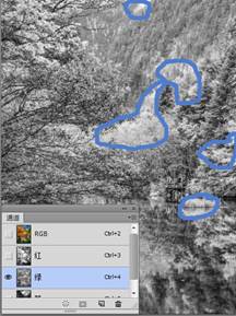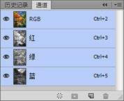 (2)用鼠标分别单击通道面板中的红、绿、蓝通道,可以看到图像变成了明暗不同的灰色图像。