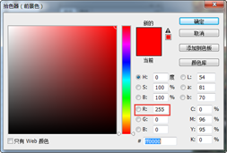 单击RGB通道,然后回到图层面板新建一个图层1,并设置前景色为纯红色R255 G0 B0。如图6所示。