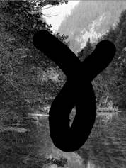 (5)选择画笔工具,设置画笔的硬度、不透明度、流量参数均为100%,然后在图层1中随意绘制一笔,如图7所示。然后回到通道面板中,分别单击红、绿、蓝通道,可以看到通道变了,通道中出现一个白色的图形,而绿、蓝通道中出现了黑色图形。如图8所示。