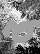 同理,可以分别对应查看绿色通道中最亮、最白的部分恰好对应彩色图像中明亮的黄色、鹅黄色树叶和明亮的天空(青色的天空由绿色与蓝色组成),蓝色通道中最亮、最白的部分恰好对应彩色图像中的亮蓝色的天空、泛白的岩壁、青色的天空。如图4、图5所示。