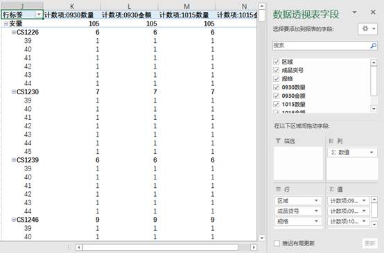 完成后的数据透视表效果图: