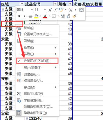 11、逐一右击所有项目的任意单元格,去掉“分类汇总…”前的勾: