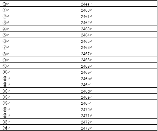 1-20带圈字符对应代码如下所示: