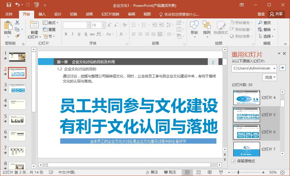其实,PPT为我们提供了一个简单的方法——“重用幻灯片”功能,且能一一避免复制粘贴出现的问题。