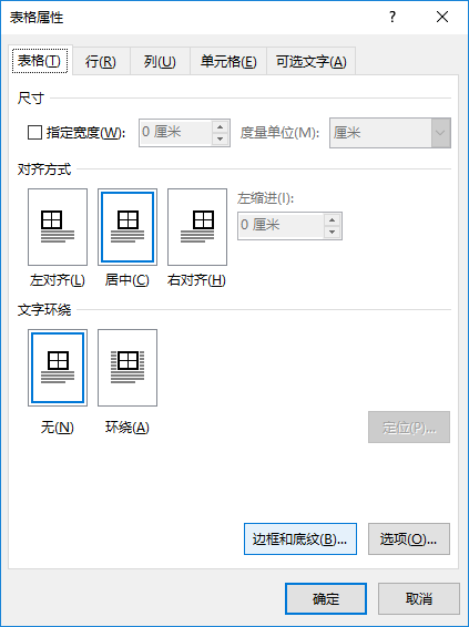 打开“表格”对话框,单击“边框和底纹”按钮,打开“边框和底纹”对话框。