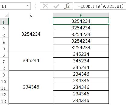 如果合并单元格是数字,可以使用公式:=LOOKUP(9^9,A$1:A1),或者=LOOKUP(9E+307,A$1:A1)。