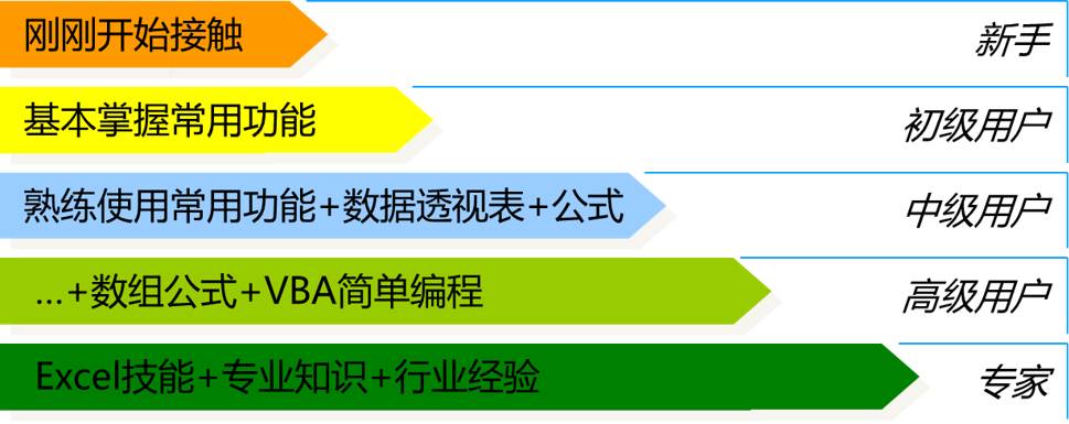 其实,Excel用户水平大致可划分为新手、初级用户、中级用户、高级用户、专家。不管哪个层次,都是需要把专业知识、行业经验和Excel技能结合起来的,并不是只有到了专家级才这样。