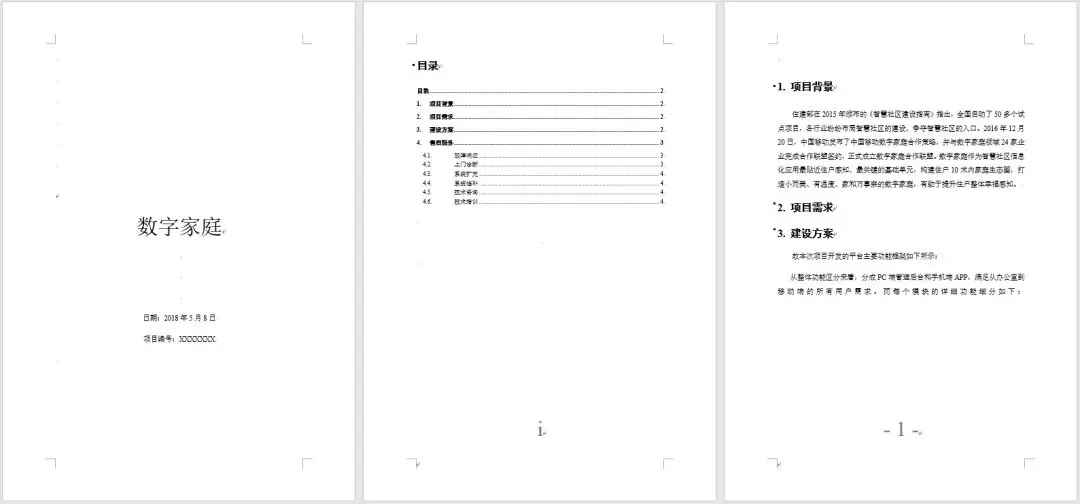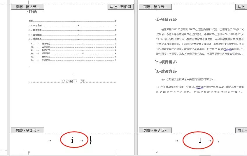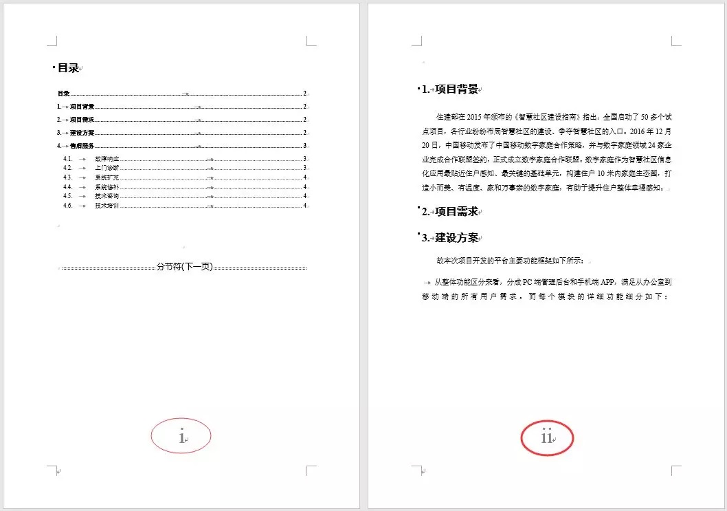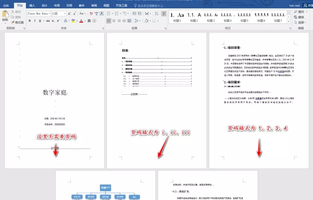 在写论文、标书的时候,通常会涉及到这个技巧。即为封面、目录、正文分别设置不同的页码。一般情况下,文档理想中的页码应该是这样的: