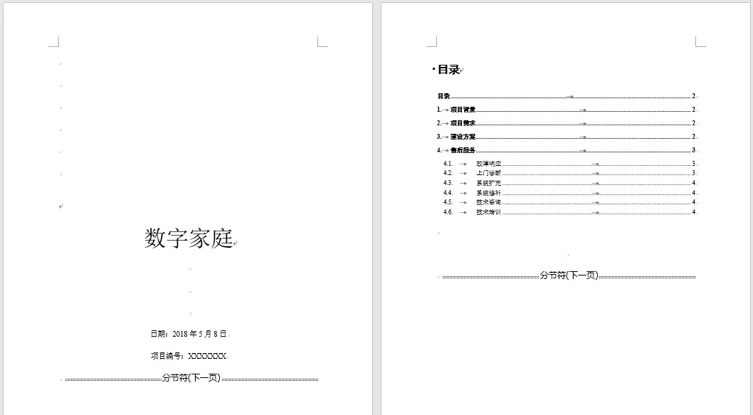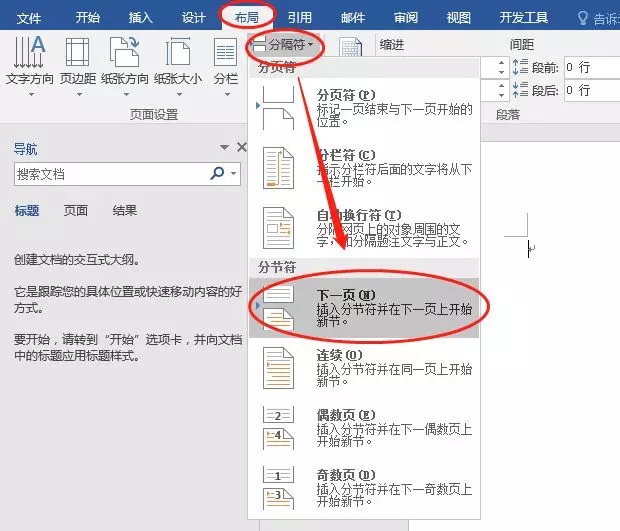Word中,分节符的主要作用是用于分隔前后文档的格式,因此我们用分节符将封面、目录及正文页面隔开,如图所示。