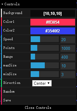 想要我们也想要得到这种特效背景图片,可以打开网站,直接在右上角的参数框中调整粒子大小、方向、密度以及颜色等参数......