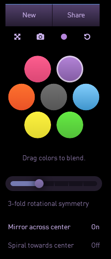 技巧提示:点击左上角的圆形图标,可设置炫光颜色;点击相机图标,则可以保存图片。