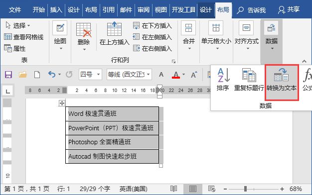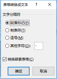 (4)选中左侧保留的表格,点击【布局】-【数据】-【转换为文本】按钮,在打开的对话框中直接单击“确定”按钮。