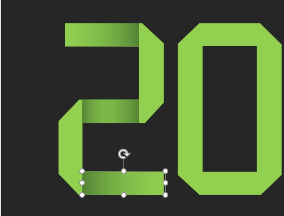 (5)使用第4步相同的操作方法,在文字上添加渐变矩形,就可以制作出折纸字体效果了,如下图所示。