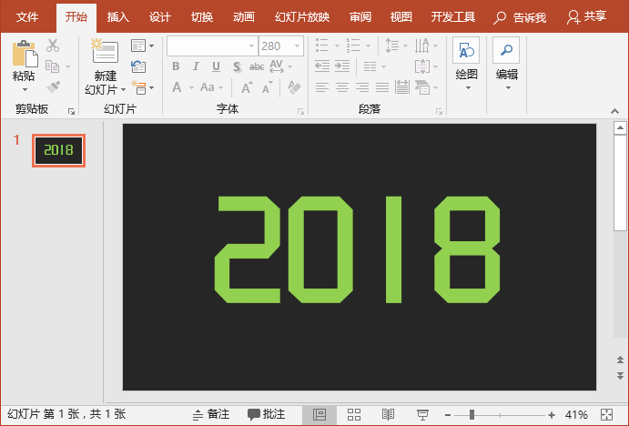 (2)在PPT里输入文字,如:2018。然后设置“字体“为”汉仪晓波折纸体“。字号及颜色可根据喜好进行设置,如下图所示。(注意:如果安装好字体后,没有发现该字体,则需要重新启动一次Powerpoint。)