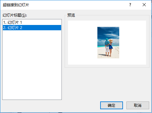 (7)弹出“超链接到幻灯片”对话框,在“幻灯片标题”列表框中选择“幻灯片2”,然后单击“确定”按钮。
