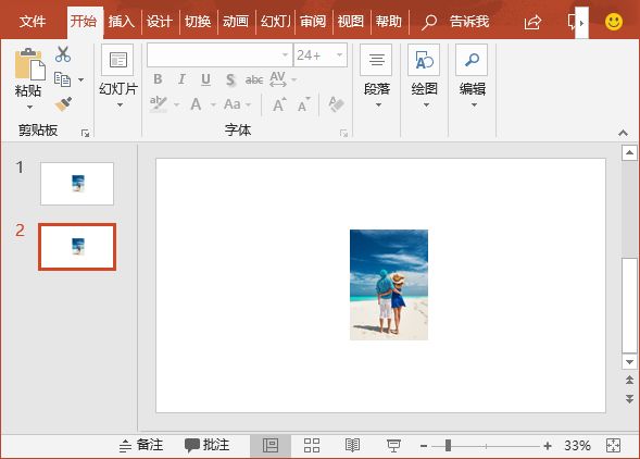 (1)打开PPT,在第一页中插入一张图片。然后按【Ctrl+Shift+D】组合键,复制一张幻灯片。