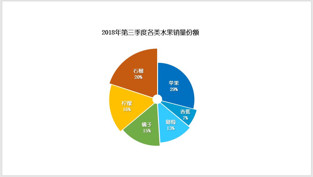 (7)然后插入一个正圆形放于正中间位置,填充为白色,并取消轮廓,最后在图表上添加文字数据,即完成图表的制作。