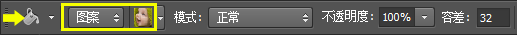 5 填充图案。从工具箱中选择油漆桶工具(快捷键G),在选项栏中选择使用图案填充。