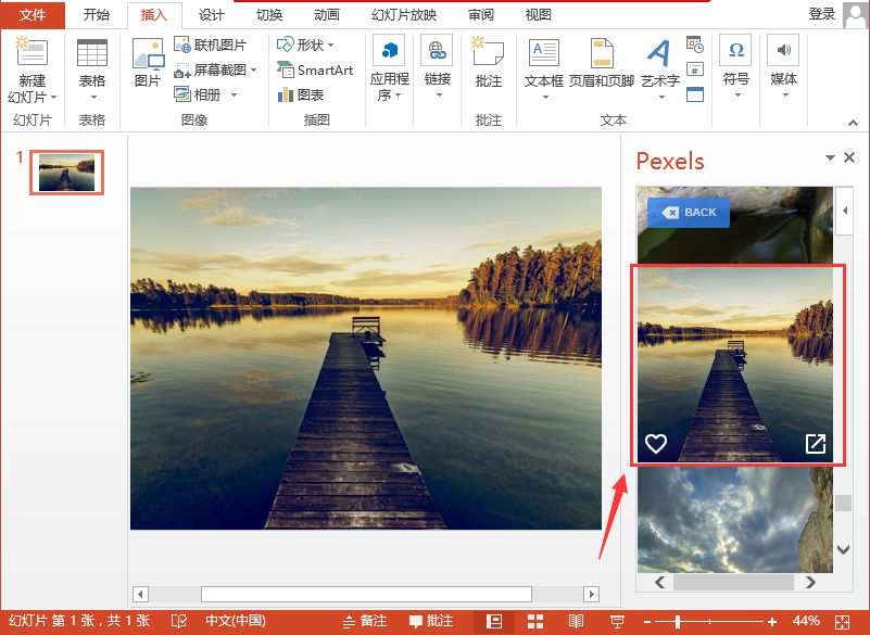 (3)此时,将会迅速得到搜索结果。选择需要的图片,直接点击就可以导入PPT。